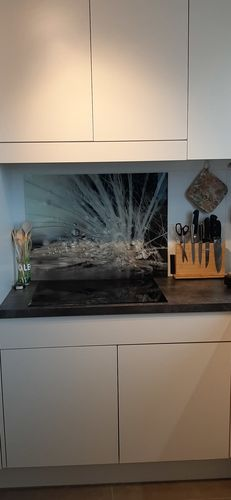 Wij hebben twee prachtigeplexiglas kunstwerkenopgehangen.1 met op eenhoutenframe om de afvoeren watertoevoer van het...